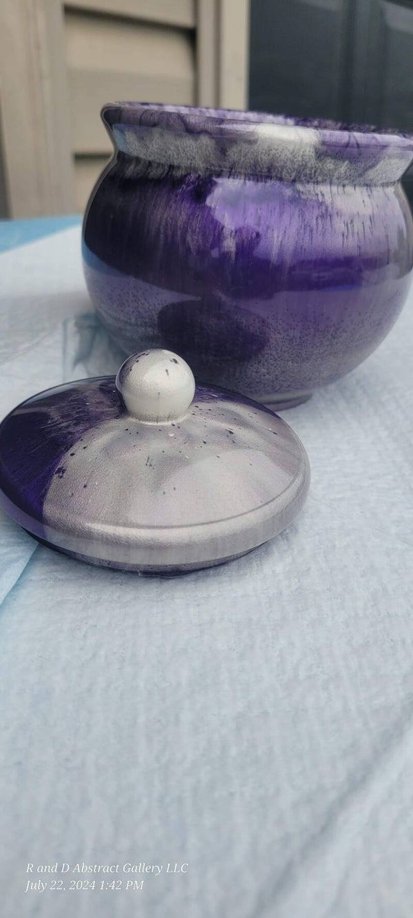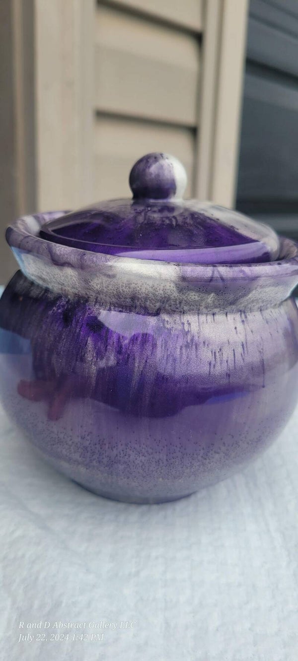 Discover elegance and functionality with our Purple Silver Large Jar with Lid. This stunning jar adds a touch of sophistication to any space while keeping your items neatly stored and accessible. Its captivating colour and design make it a perfect centrepiece for your home.